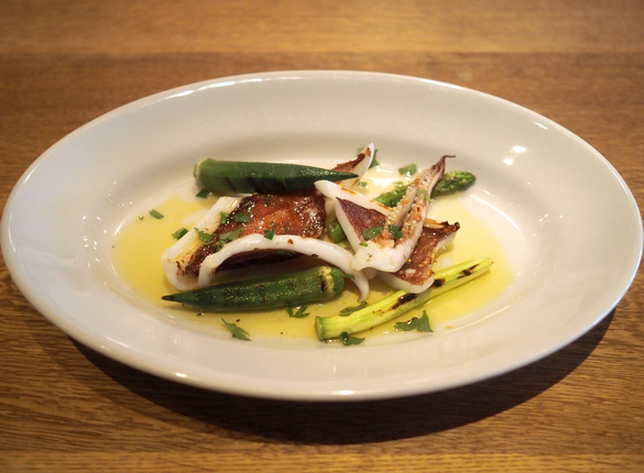 ・明石 真鯛のグリル & つるむらさき & オクラ