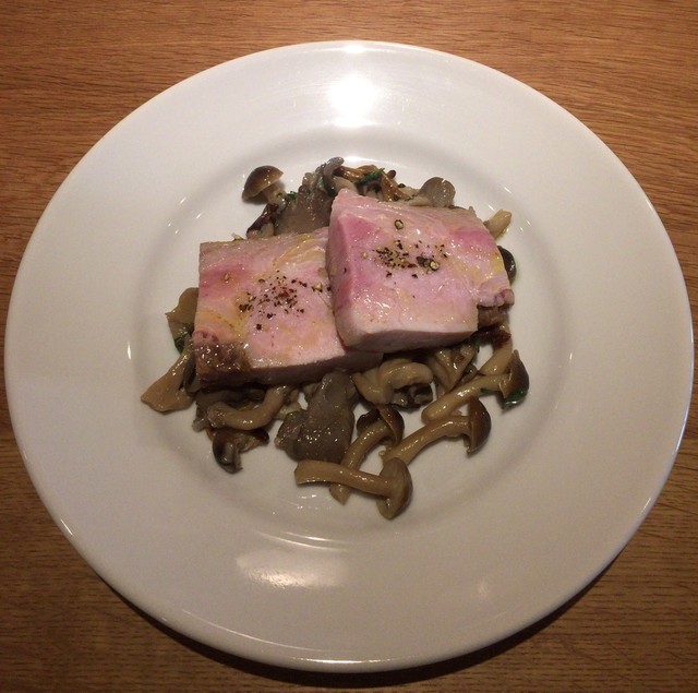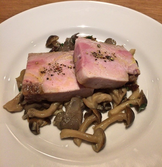 宮城 黒豚 ロース グリル + 秋田 あわび茸 + 米沢 ほうれん草 + 米沢 キャベツ + 米沢 大根
