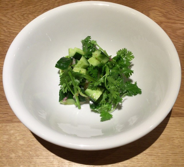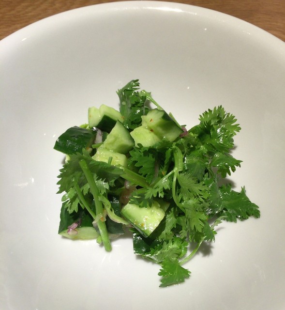 きゅうりとパクチーのピリ辛サラダ(アップ)