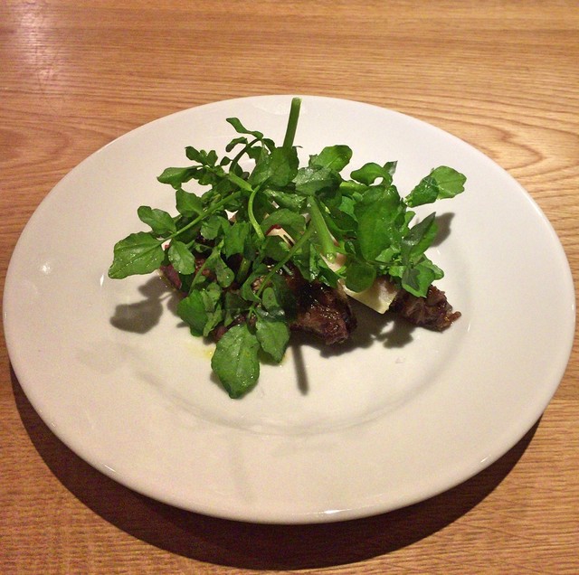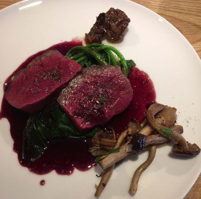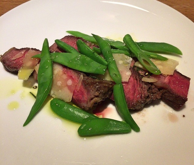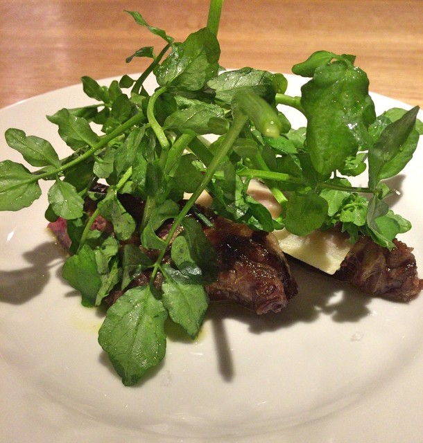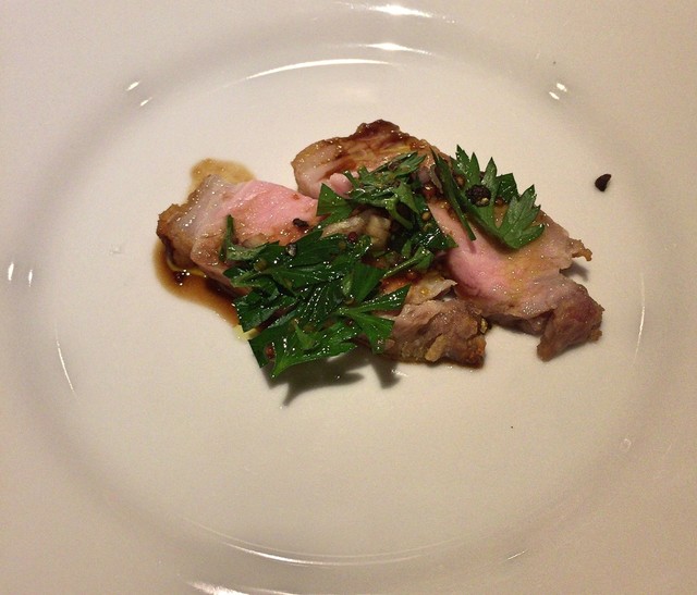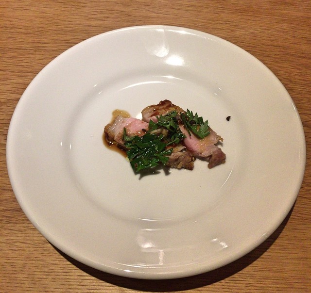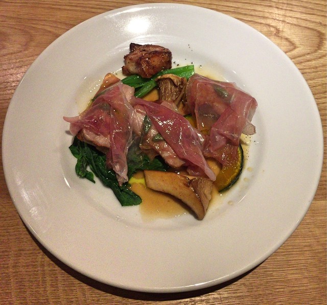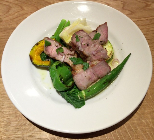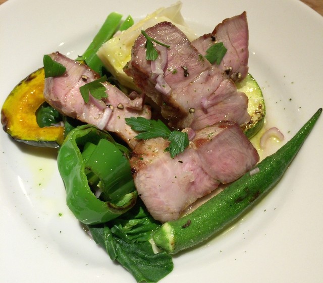 青森県産鴨のローストと山形県産舞茸のフリット(アップ)