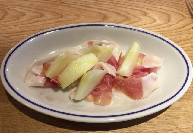 生ハム + クラウンメロン + トスカーナ サラミ + 小桃の酢漬け(アップ)