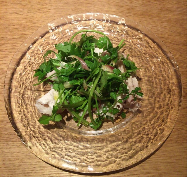 生ハム + 蔓紫 + あわび茸 + 南瓜。