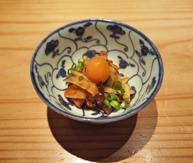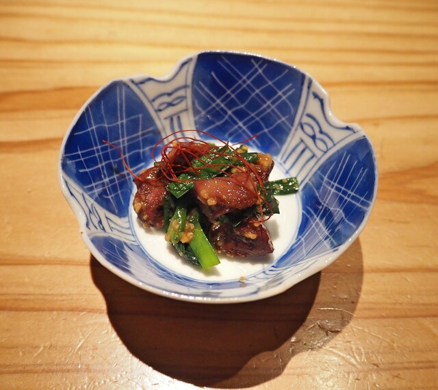 比内地鶏の胸すじと黄ニラの三杯酢
