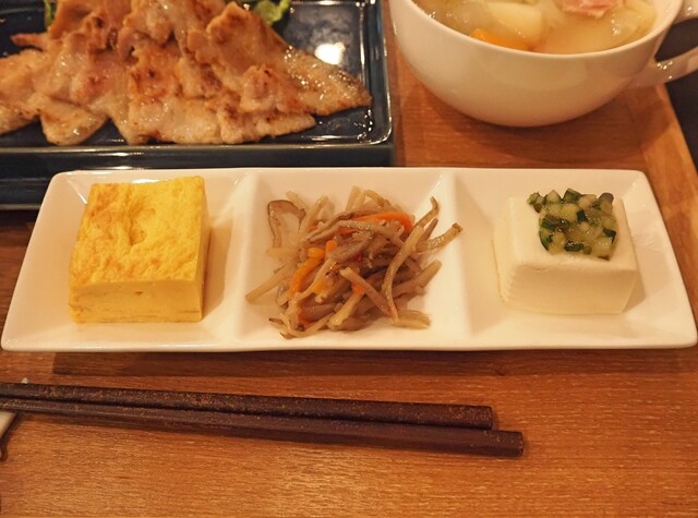 副菜(卵焼き + 金平牛蒡 + だし・冷奴)
