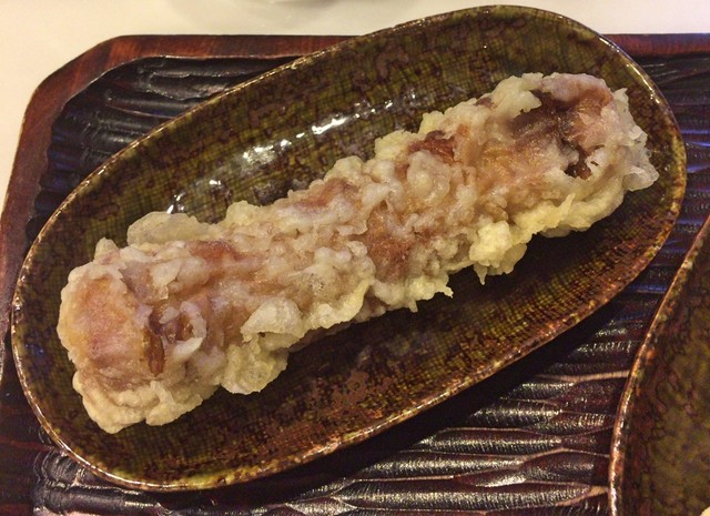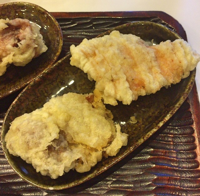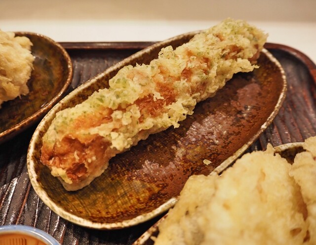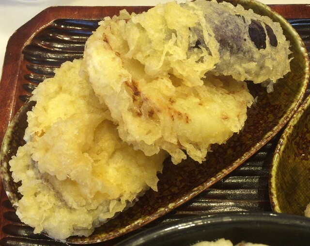 この日の野菜天は茄子、筍、さつまいも。)