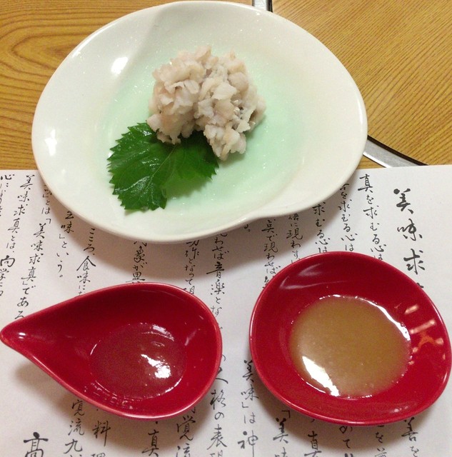 ハモの落とし(徳島県天然ハモ)(梅肉 + 芥子酢味噌)