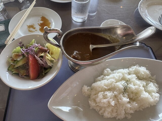 こんな時は気分がイイので、午後のスコアを気にしてライトなカレーライス大盛りを頼みました。