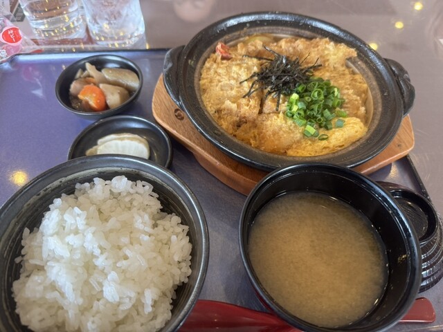 海老フライと豚カツが卵とじしてあって、アッツアツ。
