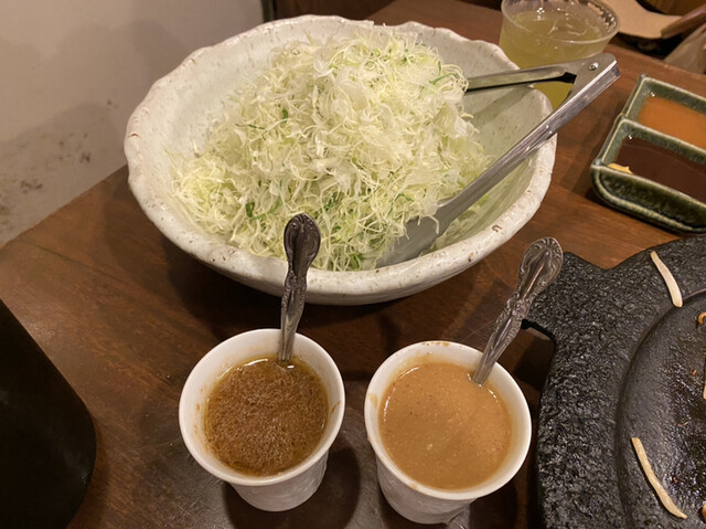 キャベツとドレッシング(おろし野菜、ごま味噌)
