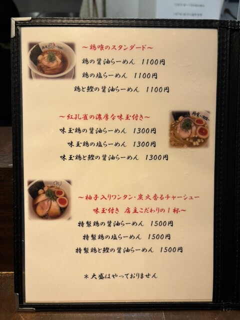 一番手前のカウンター席につくなり、「特製鶏の醤油らーめん」(1,500円)を迷うことなく注文する。