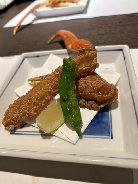 ここらへんからは、ラストスパートですけれども、ズワイガニの唐揚げとなります。お恥ずかしながら、私、蟹の唐揚げは、初めて食べました。カリッとしてうまいですね。