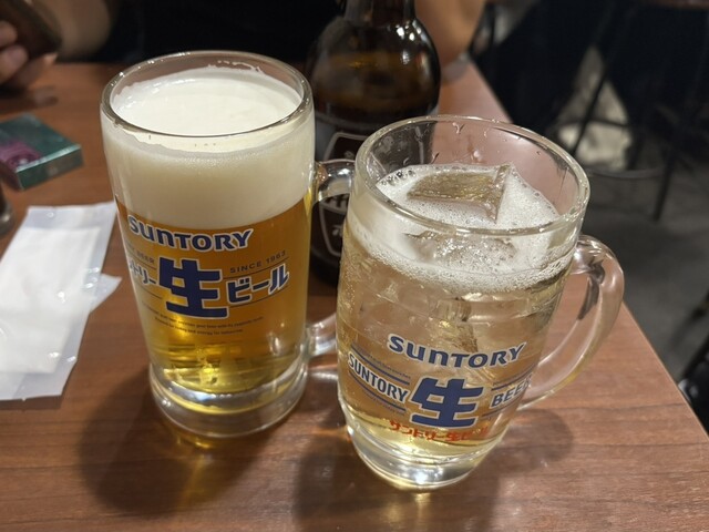 行くまえに、もしかしたら最初は立ち飲みかも?と聞いていたけど、運良く座れました。