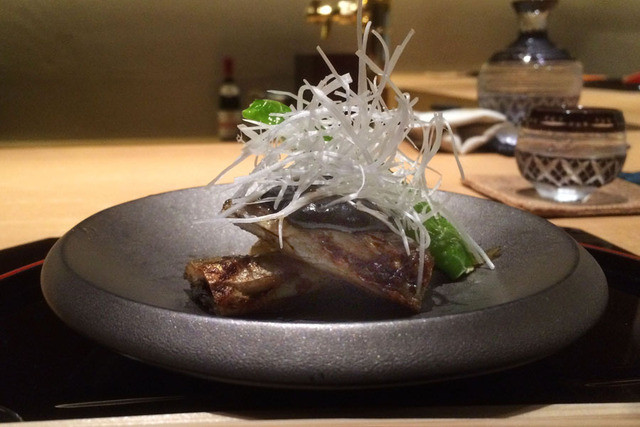 香ばしい焼き鮎の頭と賀茂茄子の田楽。日本酒が進みます。
