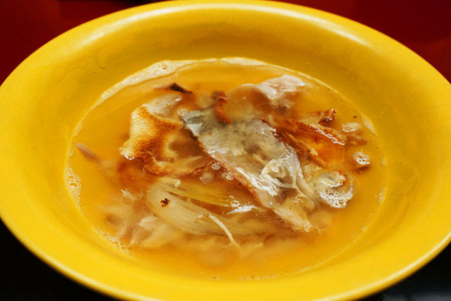 『ぐじの酒焼き』は、良質のぐじを仕入れられて、一晩寝かせ、お酒を塗り重ね焼かれた手の込んだ名物料理です。香ばしさと旨味が後を引く美味しさです。ある程度食した後、お湯を注いで二段階楽しめます。