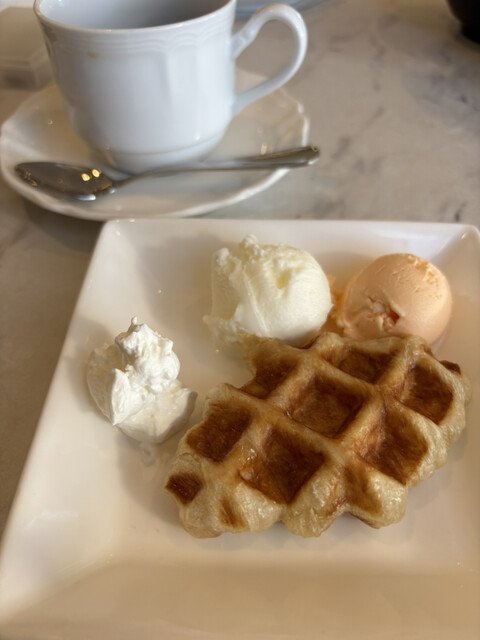自分で焼くクロッフルに富良野メロンのジェラードを添えて頂きました。