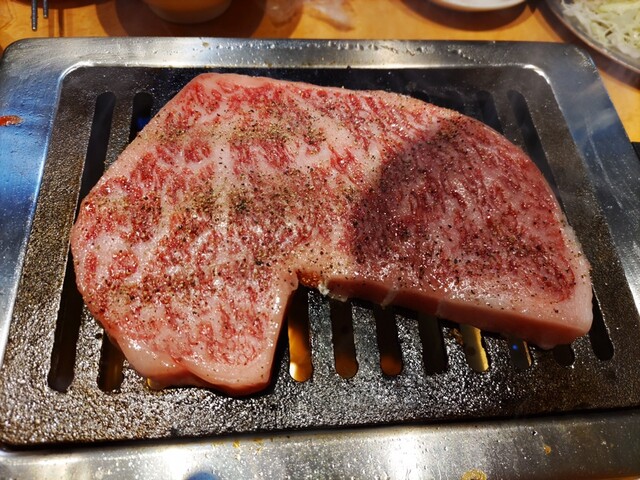 そしてリブシンステーキ。これで2980円。両面に火を通したあと、カットしてもらいそれぞれ好みの焼き加減で食べる。まずかろうはずがない。