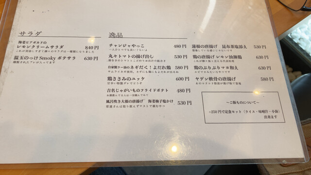 また、追加で盛り盛り氷レモンサワーをオーダー。もうこれでもかってくらいにレモンが入っています。700円とちょっと値が張りますが、まあこんだけレモン入ってたらね(笑) ただ気に入ったのがこちらのお店・・・盛り盛りとかゴロゴロ系のサワーでは追いサワー(330円)なるものをやってくれる。ラーメンの替え玉かよって心の中で突っ込みましたが、こういうセンスも私は好きです。