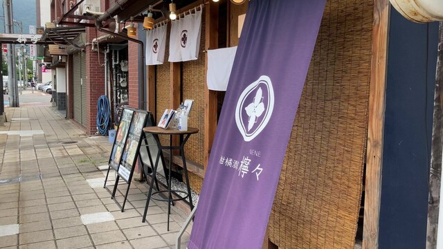 とにかく真新しい。食べログによるとオープンは2020年10月10日とありますから訪問時は2年経ってないくらいですかね。窓際にすだれを下ろし店先には紫色の暖簾。入り口には純白の暖簾。実に涼し気な和テイストで私の好みの外観です。