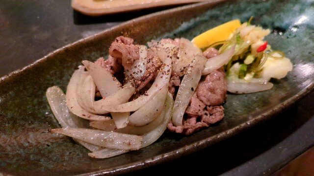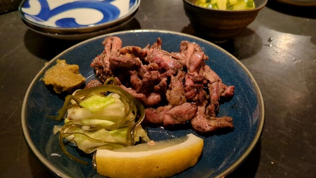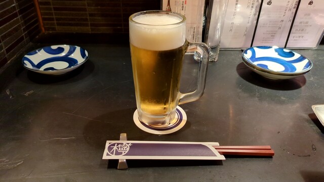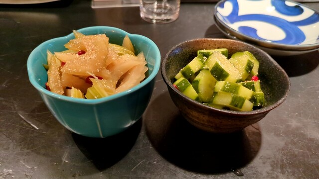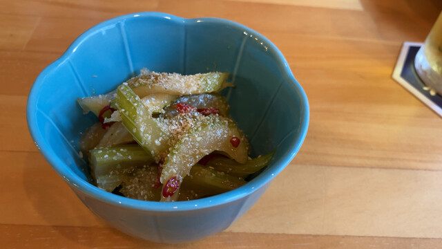 軽めでオーダーしたのは鳥ユッケ コクあって美味し。卵黄を書き割って味わう鳥肉は通り一遍の味ではなかった。タレがいいんだろうねぇ・・・加えてセロリのきんぴら。真夏の暑い時には清涼感あって美味し。フードはこれだけでしたけど、単純に通り一遍で終わってない料理は恐らく他でも工夫が期待できるんじゃないでしょうか。メニュー見ているだけで興味深いものが沢山ありました。