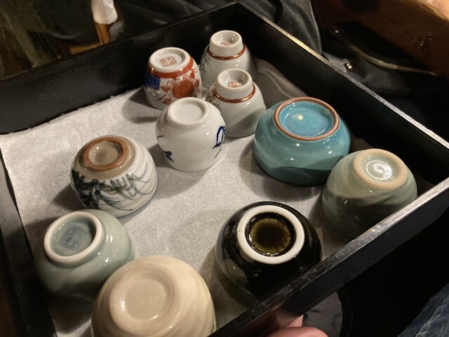 訪問時は正月二週目で寒かったので手取川を燗で頂いたのですが(燗でも冷でも美味いということで)、燗の場合はオチョコを選べるサービスがあります。小さいサービスだけど、こういうの実にいいですね。