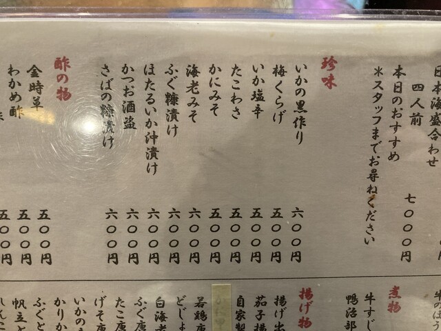 珍味は季節的、タイミング的メニューも多いのでテーブルのメニューだけでなくカウンターに書いてあるメニューもよくよく見てオーダーしてくださいね(笑)