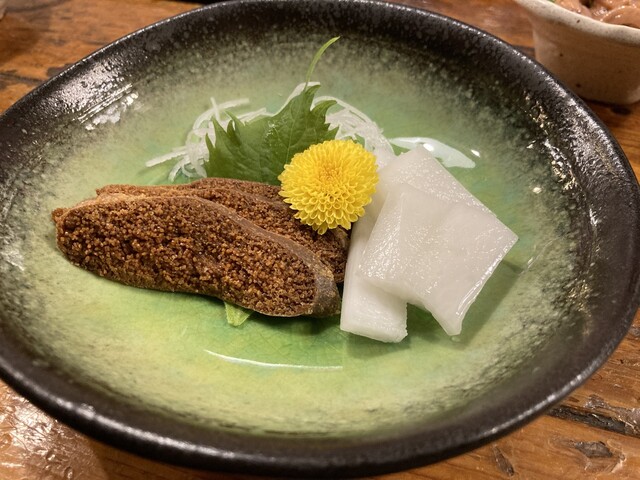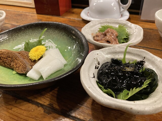 珍味としてはフグの卵巣の糠漬け、イカの黒作り・塩辛の三点をチョイス。