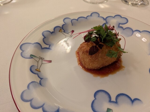 前菜5種盛り合わせに始まり、温前菜のクロケットは日本人向けにアレンジ等しておらず、イタリアで食べたまさにそれ。日本のコロッケとは味付けが違うのでなかなかお目にかかれなかったですが、一口いただいたこの瞬間嬉しかったな〜