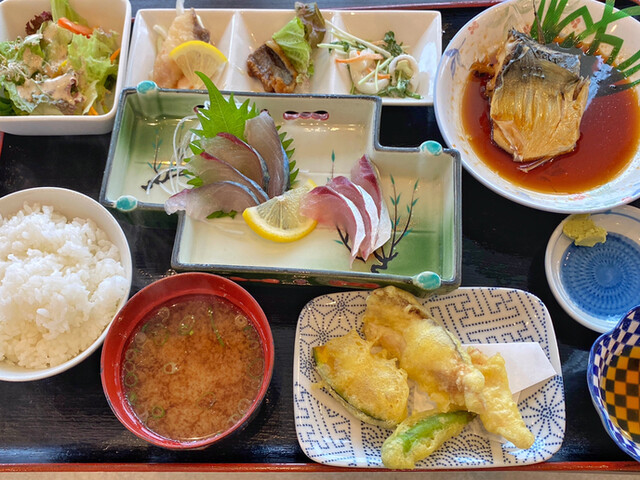 サバの煮付け、お造り、天ぷらと鯖づくし。
