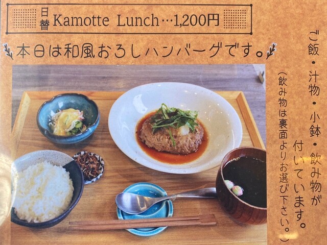 ランチのハンバーグは粗挽きの肉々しさと、得てして「和風」と付くと甘くなりがちな、和風おろしソースも甘さを抑えて塩味がお肉とよくマッチしてます。