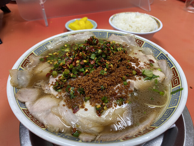 チャーシュー麺¥1,100 無料のニラ辛子と焦がしニンニクトッピング