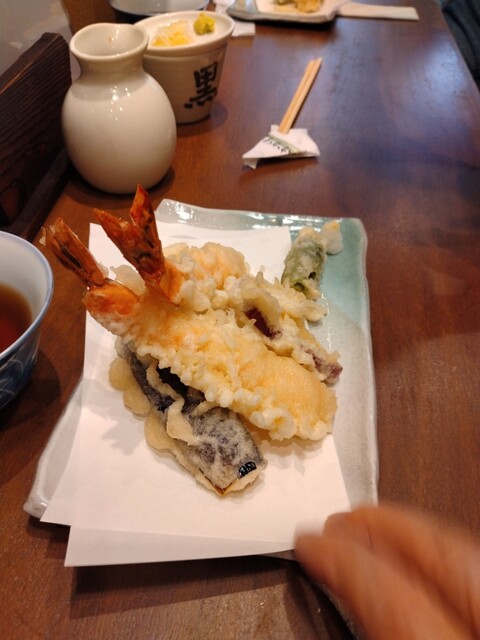 天ぷらもエビ2本は娘が食べて、舞茸や野菜類はもらって食べて良いつまみ。