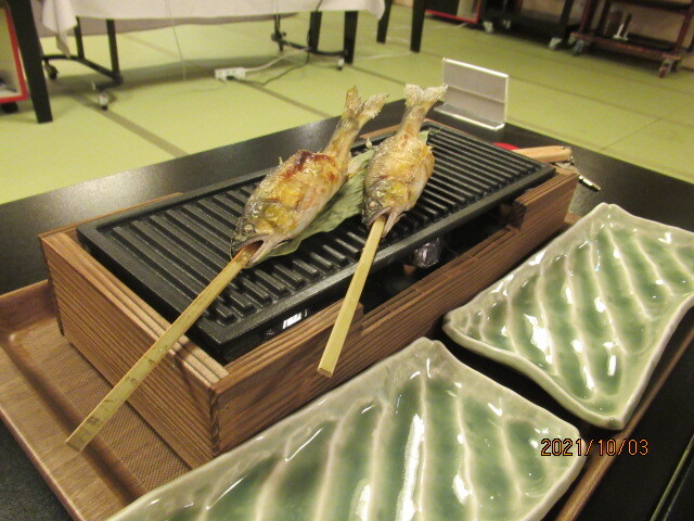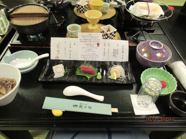 食事は、一人でも連泊だったこともあり?、私だけ庭に面した広い食事処に朝晩二日とも。