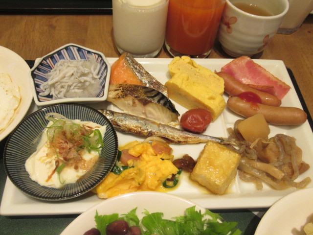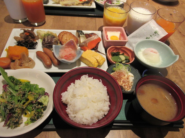朝食もバイキングですが、焼き魚も美味しく、お茶漬けもあり美味しかったです。品の豊富さで朝晩共に大満足でした。