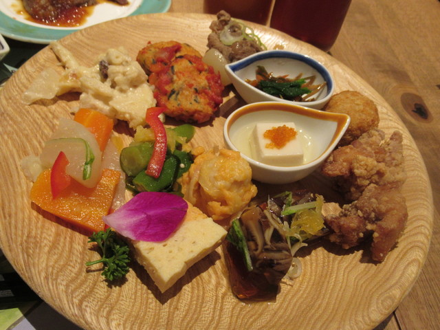 ここのバイキングは、何故かお盆というかトレーが無いので、大皿に少しずつのせて盛り付けます。