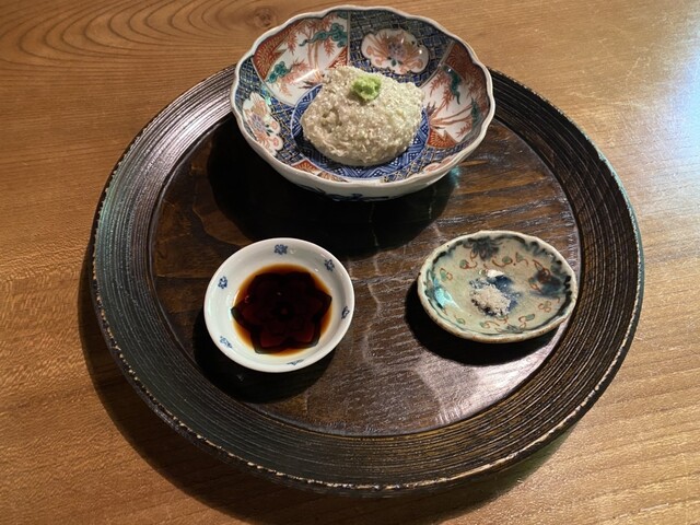 先に供されたセットのそばがきのお裾分け頂くと、蕎麦の香りが立った素晴らしい一品