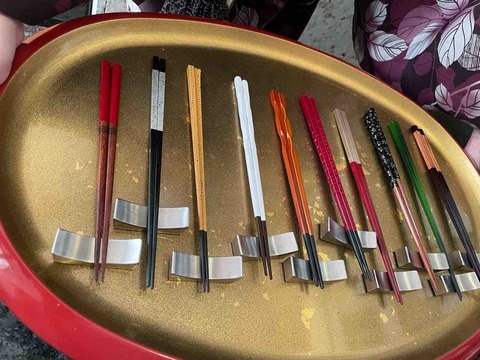 乾杯の後、何やら女性スタッフさんが、箸と箸置きを持ってきました。