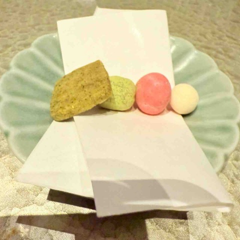 3種(クリームチーズ、いちご、抹茶)の麩菓子に、ほうじ茶のクッキーでした。