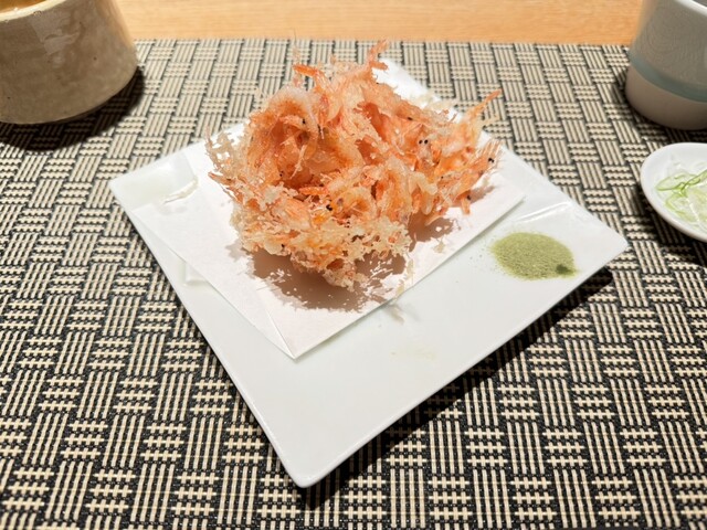 由比産の生桜海老のかき揚げはとても美しく、そしてとても美味しい。