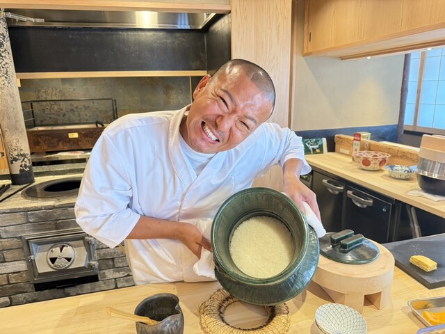 中国のお店が釜炊きご飯をスペシャリテとしていたほど「米」を得意としていて、大将の奥さんの実家が農家だそうで、刈谷産ミルキークィーンを店内で精米し、岡崎市の柴田酒造場も使用する硬度0.2という極めてやわらかな幻の軟水「保久町神水」と合わせて炊いている。