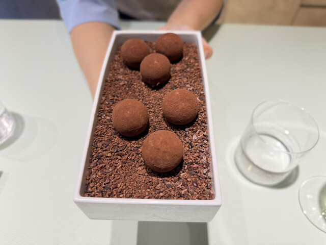 フィナンシェは、L'Archeste、L’ETERREでも提供しているスペシャリテで、MAISON BORNIAMBUCが製造する低温殺菌の無塩バターを使用しているのが特徴。製造量が少なく、パリでも4店舗でしか使用していない希少食材で、これを焼き立てで提供していて、とても美味しかった。