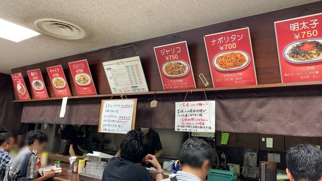 開店直後に伺うも既に1巡目の先客が丁度カウンターに収まり、2巡目の先頭に。期待に胸膨らませメニューを凝視。店名を冠した"ジャポネ"ってあるんだ、"ジャリコ"や"バジリコ"は評価高かったなぁ...などと考えている時、「先頭のお客さん、何にしましょう?」って先行オーダーを聞かれ、その時目に止まった「ナポリタン!」を頂きました。