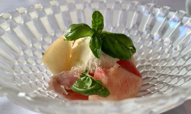 桃とヤギのリコッタチーズのカプレーゼ(接写)