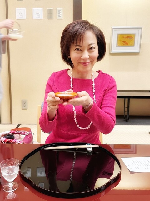 吉田会長が気に入っているお昼のコース【主菜が選べる九谷五彩】と、浅田オリジナルの国酒=日本酒を頂きました。