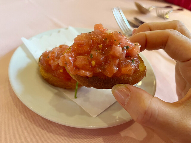 いつも必ず食べるのは、ブルスケッタ。こちらのお店のブルスケッタを超える品は、他店で食べたことがないダントツです。