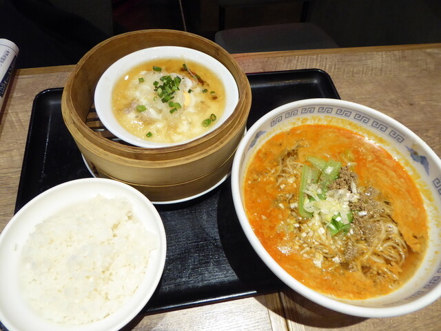 同行して頂いた京鼎樓マニアの男性のお方は、ボリュームランチ『担々麺+肉餅飯(よっぴんはん)』。「よっぴんはんって何ですか?」と聞いたら、「卵を乗せた蒸しハンバーグ」だそうです。