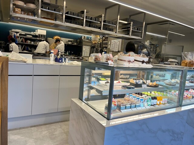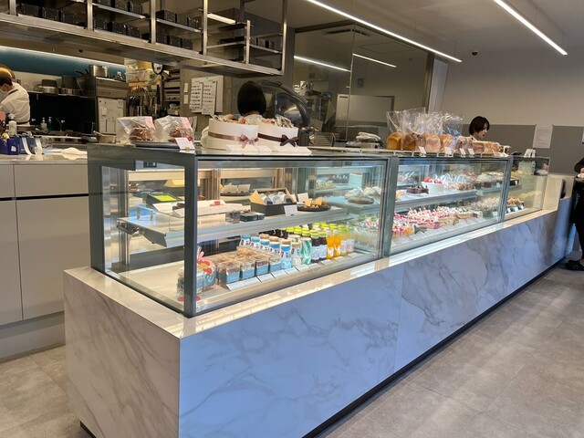 オシャレな店内で、お客さんもひっきりなしに買いに来ていました。人気店だけあって、厨房で複数のスタッフが次々にパンを焼いていました。