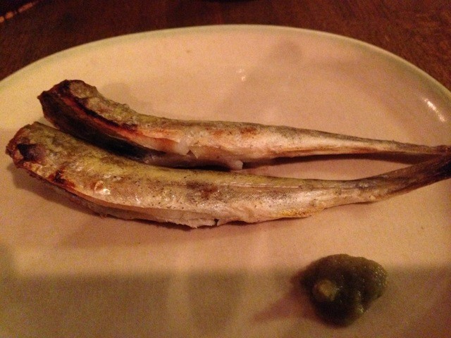 日本酒のことはよくわからないのですが、そういえばこのお店で地元のお酒をいただいたことがなかったので、これを1杯、常温で。それにししゃもを。
