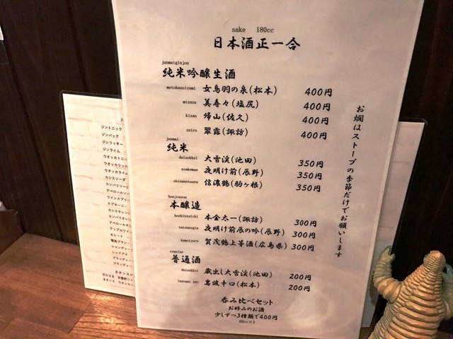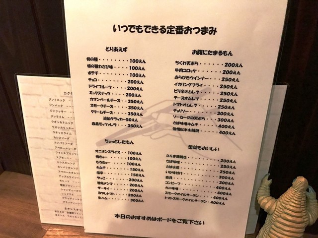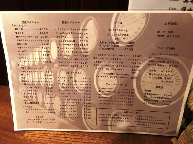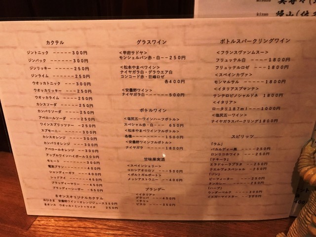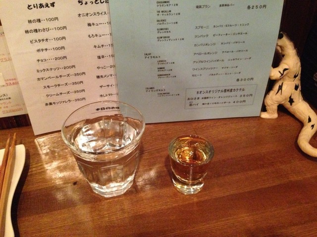 次は、このお店を初めて訪れましたので、どのようなお酒があるのか、メニューリストや壁の貼紙をゆっくり眺めて決めました。