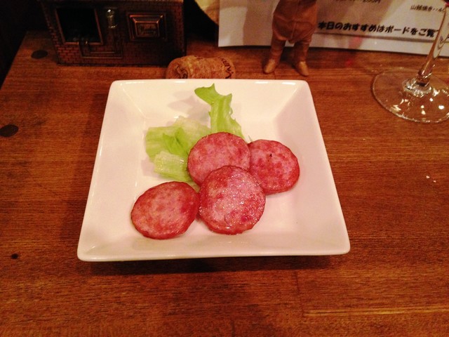 その中を縫って、壁に貼られているグラスワインのメニューから五一わいんのメルローをお願いしました。