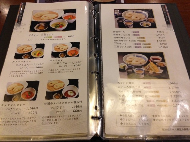 メニューを拝見すると、冷たいか温かいかの別に、味付けが基本の醤油や味噌のほか、カレー、担々があったり、セットとして天ぷらや地鶏のご飯などがあって、サイズを組み合わせるとかなり豊富なメニューになっています。